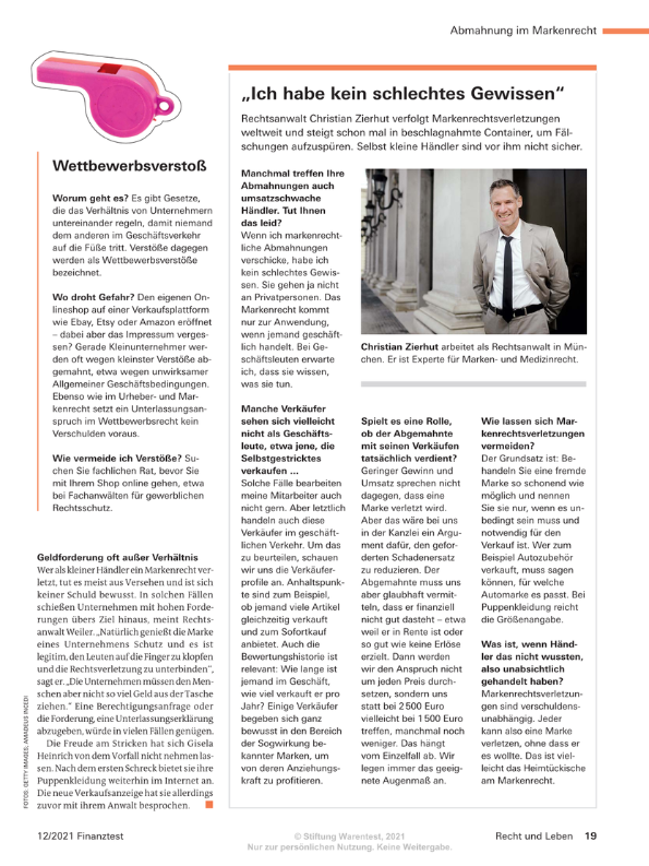 Es ist mir eine große Ehre, als einer der besten Anwälte in Deutschland auf meinem Gebiet anerkannt zu werden. Diese Auszeichnung ist für uns Ansporn und Verpflichtung zugleich: Wir möchten unseren Mandanten weiterhin erstklassige Arbeit liefern – unabhängig von Größe oder Bekanntheit. Unser Erfolg zeigt, dass sich Einsatz und Leidenschaft für Marken auszahlen.